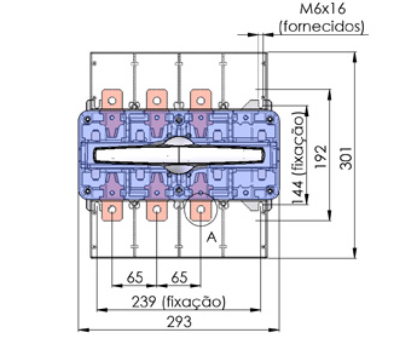 | Seção dos condutores de conexão – cabos com terminal – barras – torque no parafuso de conexão (+-10%) – parafusos dos terminais (Sextavado) | (2x) 150mm² 30x10mm 28Nm M10x30 – | ||