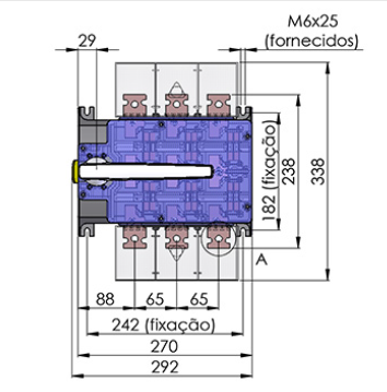 | Corrente nominal máxima de fusíveis de ação retardada In | 630A | ||