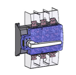 Seccionadora-interruptora 3 polos e corrente nominal de 630A modelo KNS3/630 qualifica-se por sua operação sob carga. A velocidade de manobra da chave independe do operador, em qualquer posicionamento de montagem. O corpo das chaves é prensado em poliéster reforçado com fibra de vidro, formando com a tampa uma unidade totalmente fechada.