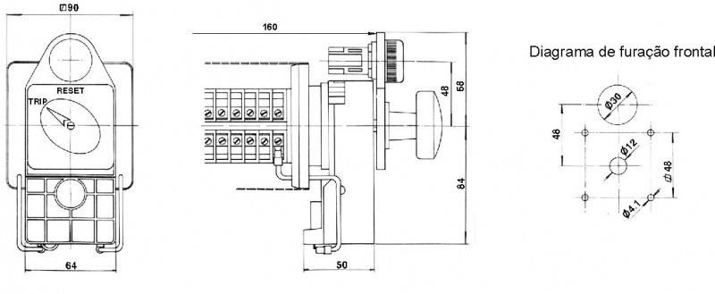DIAGRAMA E DIMENSÕES PARA RELÉ DE BLOQUEIO